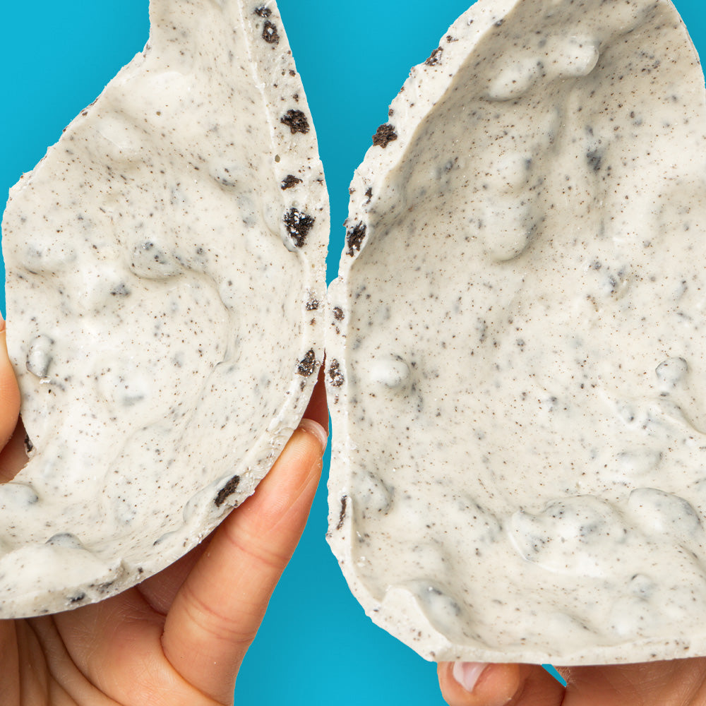Weiße Schokolade und Kakaokeksstückchen: eine Kombination, die nicht viele Worte braucht. Das Cookies & Cream Ei ist eine Explosion von süßem Geschmack und umhüllend, ideal für diejenigen, die etwas wirklich Anderes wollen. Hergestellt mit der besten belgischen Schokolade, 100% natürlichen Zutaten und nachhaltigen Praktiken, unser Osterei ist eine Bombe!