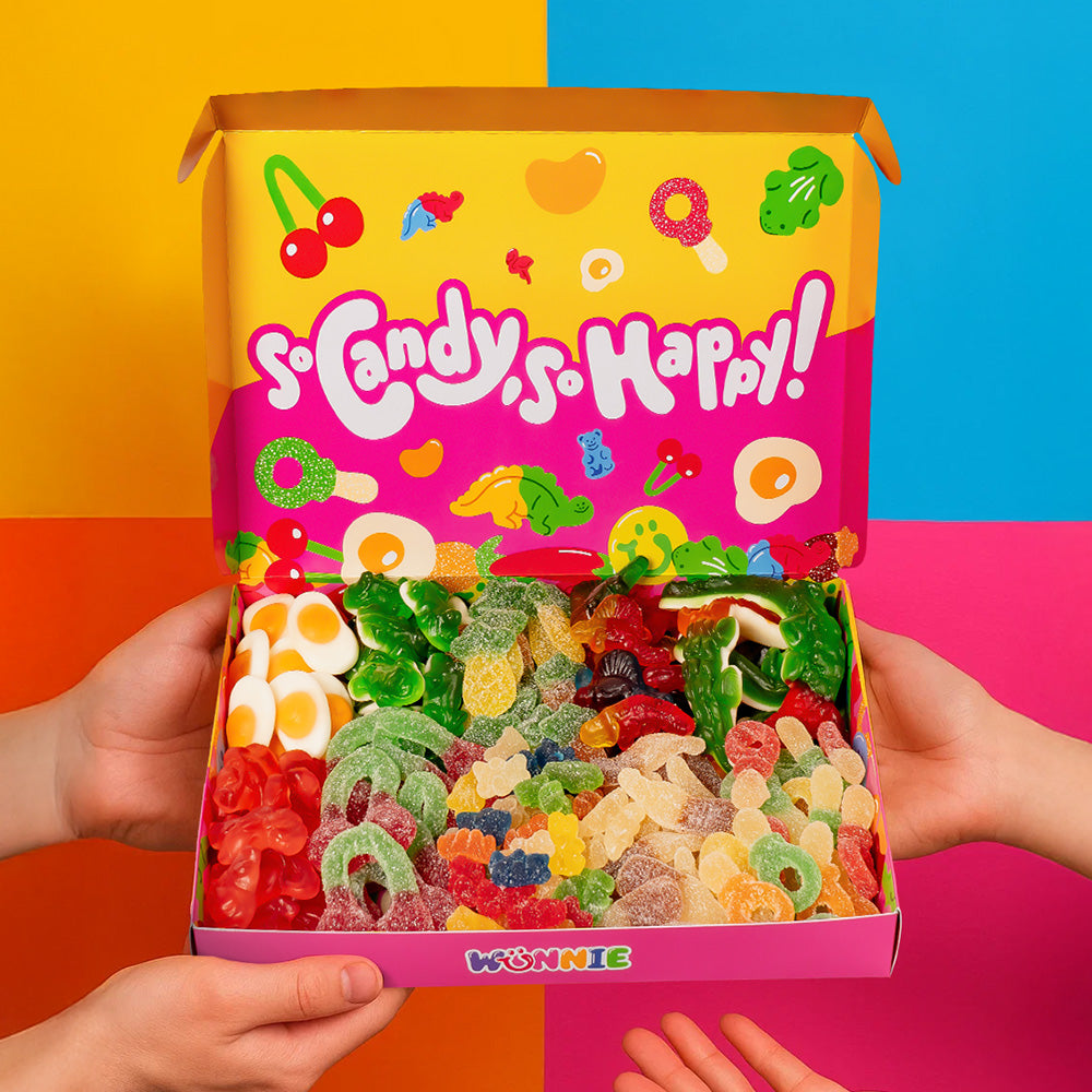 Bereite dich darauf vor, das süßeste Erlebnis aller Zeiten zu erleben: Mit Wunnie box bringst du eine Schachtel voller deiner Lieblingsgummibonbons nach Hause! Das Beste daran? Die Auswahl der Geschmäcker: kombiniere Formen, Farben und verschiedene Geschmäcker, um einen Mix nach deinem Geschmack zu kreieren!