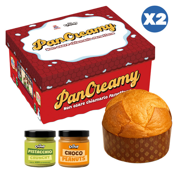 PanCreamy ist die definitive Neuinterpretation von Panettone: ein superweiches Weihnachtsdessert, das Sie schon beim ersten Bissen überzeugt! Es Panettone zu nennen wäre eine Beleidigung, PanCreamy ist viel mehr! In der Schachtel finden Sie tatsächlich zwei streichfähige Mr.Creamy-Cremes in den von Ihnen gewählten Geschmacksrichtungen.
