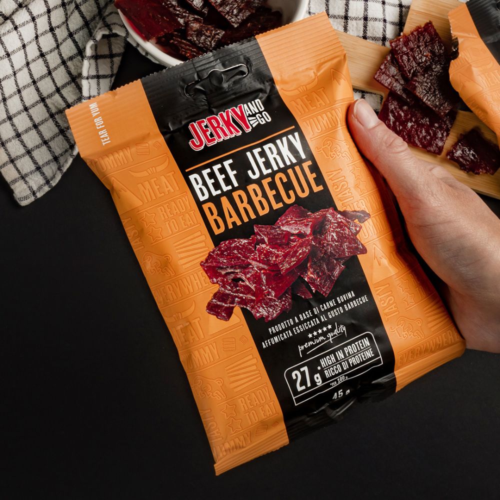 Jerky and Go Beef Jerky Barbecue, carne secca di manzo al gusto barbecue da 45g