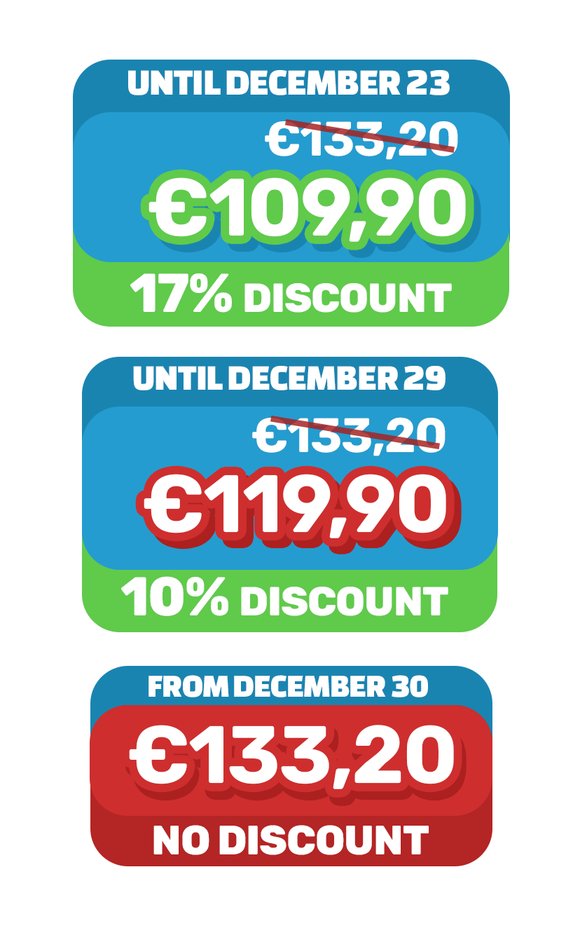 Verpasse nicht das Erlebnis, das bereits über 10.000 Menschen verzaubert hat: die begrenzten Vorräte (ja, es sind nur 1.500) und der 17% Rabatt bis zum 23. Dezember machen ihn noch unwiderstehlicher. Warte nicht, bestelle noch heute den begehrtesten XXL-Strumpf!