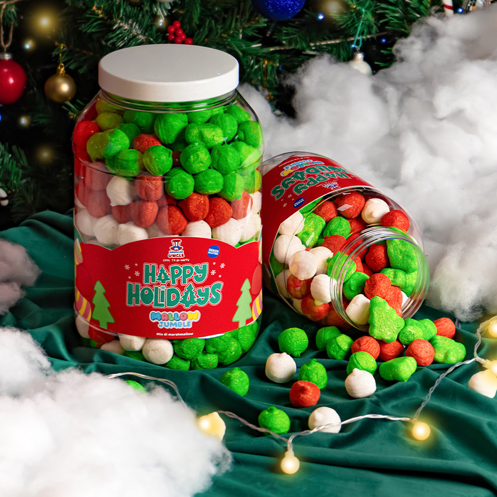 Kennst du einen Marshmallow-Fan und möchtest du ihn mit einem originellen Weihnachtsgeschenk überraschen? Mallow Jumble Genau das Richtige für dich! Diese Dose ist der Inbegriff eines Marshmallow-Paradieses. Du hast die lustige Aufgabe, die Marshmallow-Aromen zu mischen, um das Geschenk noch einzigartiger zu machen: Wähle bis zu 6 verschiedene aus mehr als 10 verfügbaren Geschmacksrichtungen aus und erstelle die Mallow Jumble Maßgeschneidert für den Beschenkten!